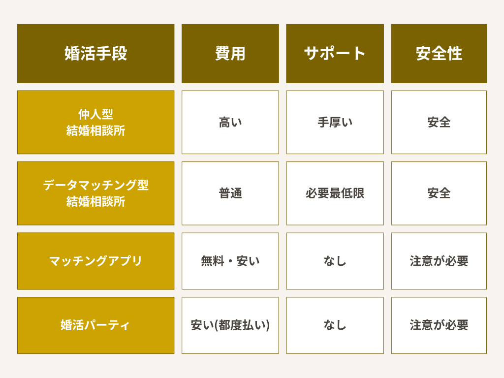 「婚活を始めたいけれど、自分にはどの方法が合っているのかわからない」